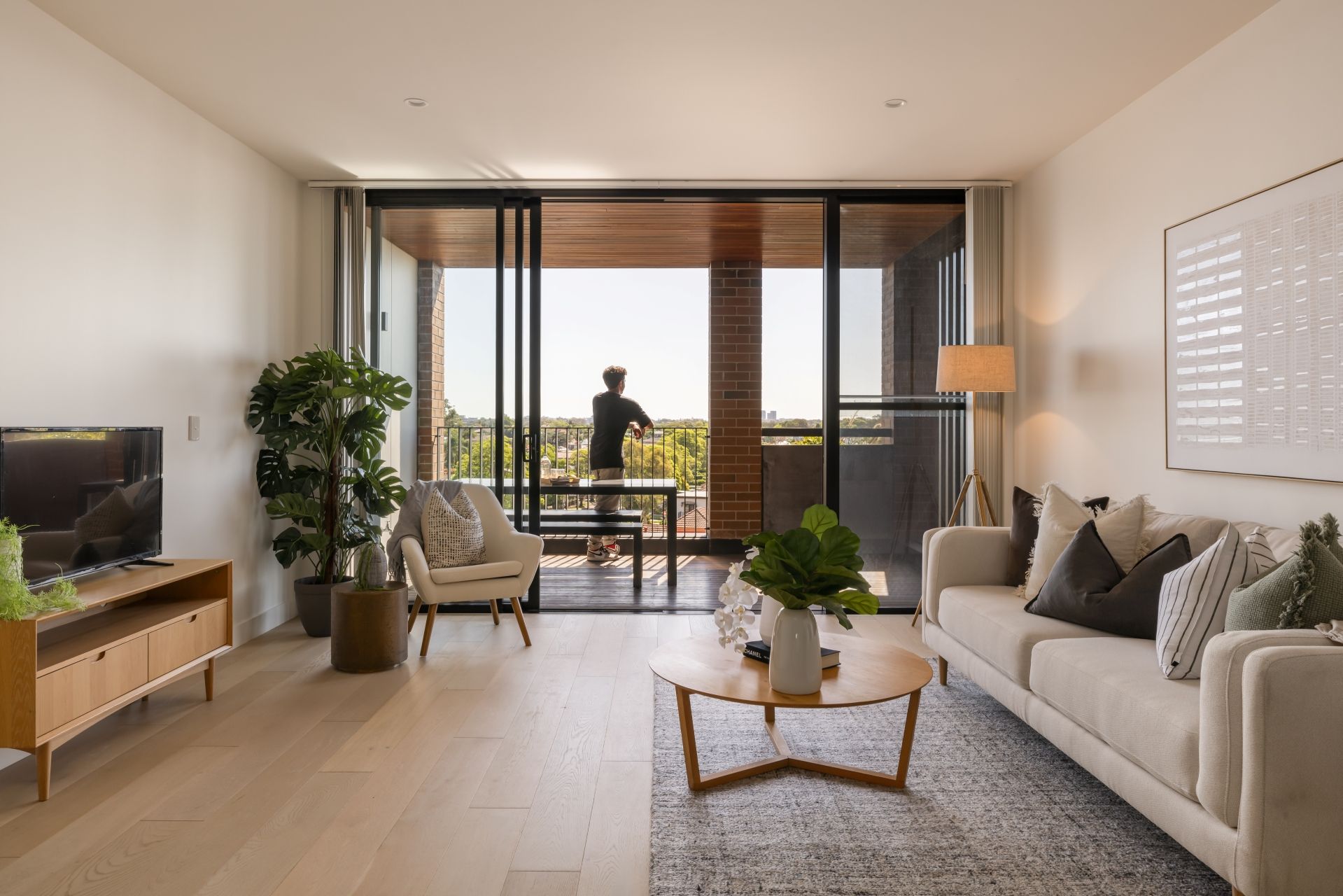 Situated in the contemporary Bosco development by award-winning architects Bates Smart, this ever-popular 2 bedroom + study apartment offers a lifestyle of convenience and comfort. Just 400m walk from Five Dock Village shops, cafes and the much-anticipated Five Dock Metro Station. Curated interiors convey a distinct air of contemporary elegance with a flowing design and balcony with water views combining for relaxed living and entertaining. Including secure parking and private storage with lift access, the apartment is superbly situated for a lifestyle of easy luxury and convenience.