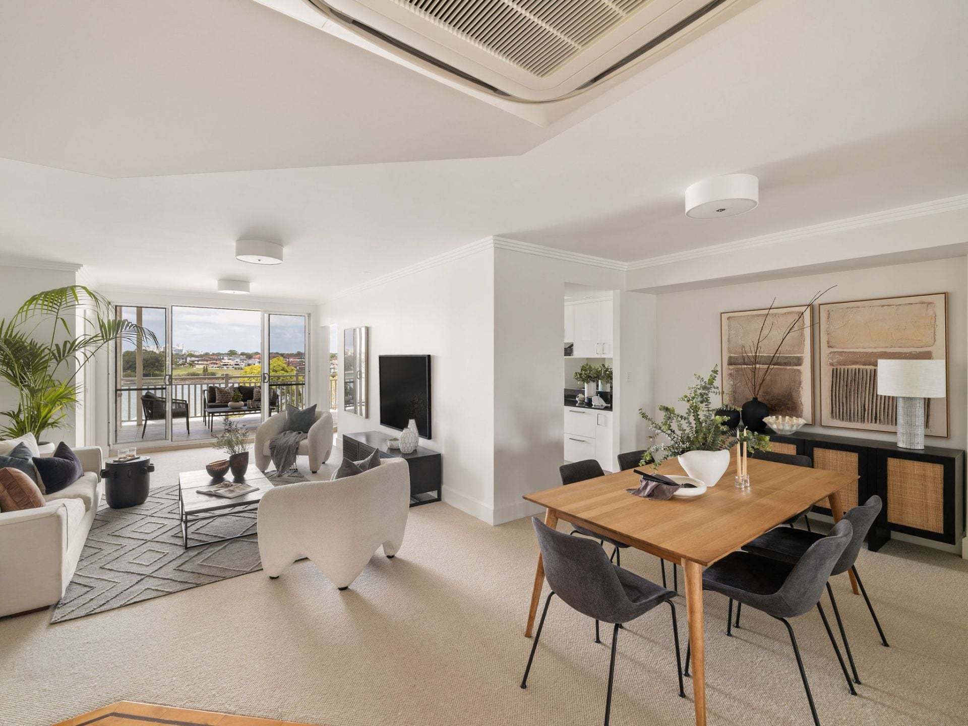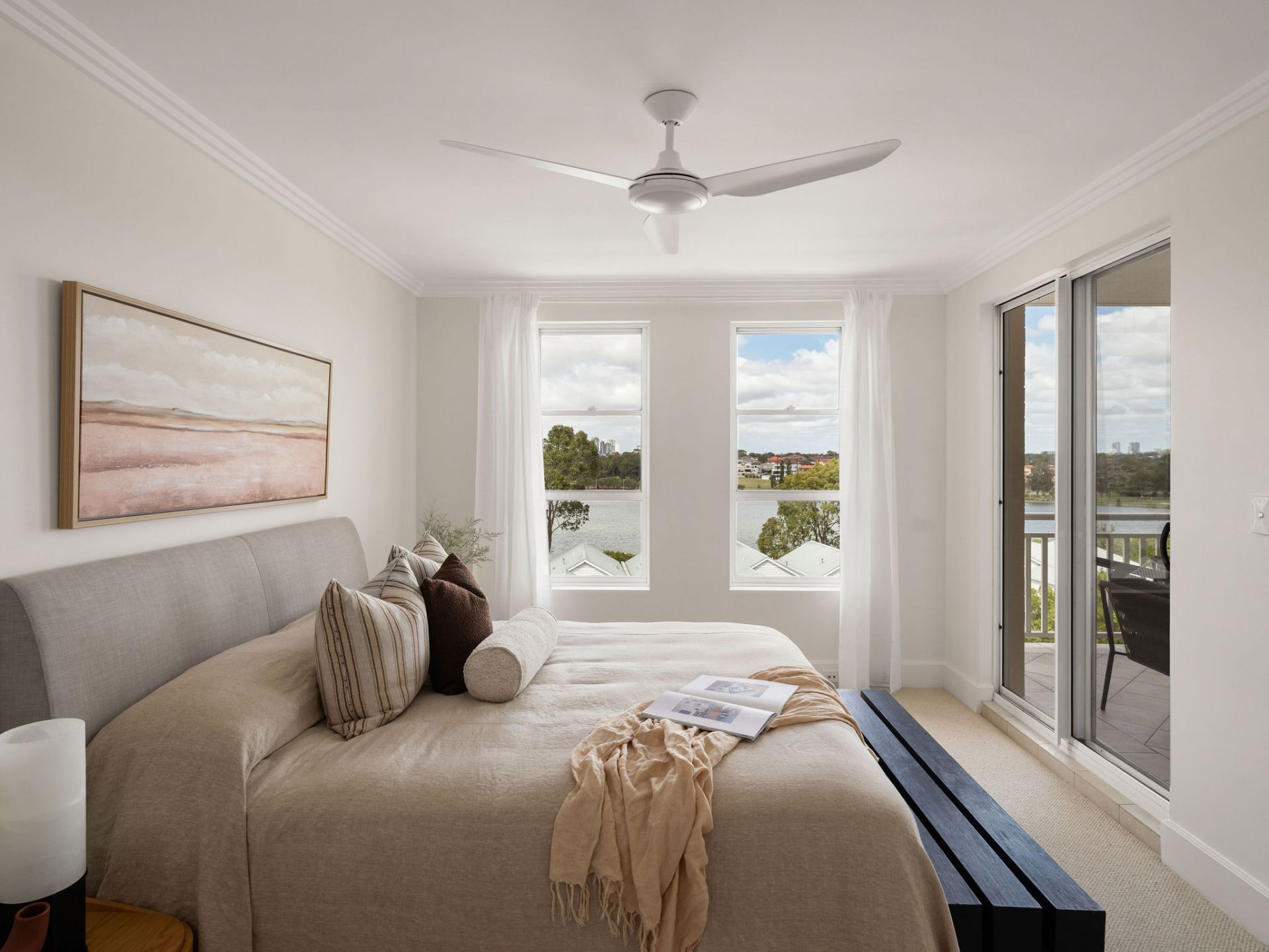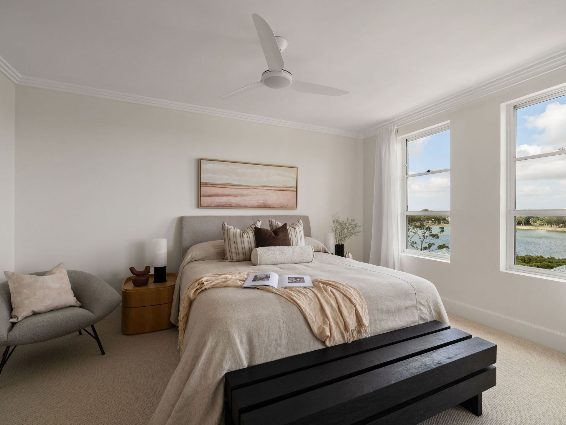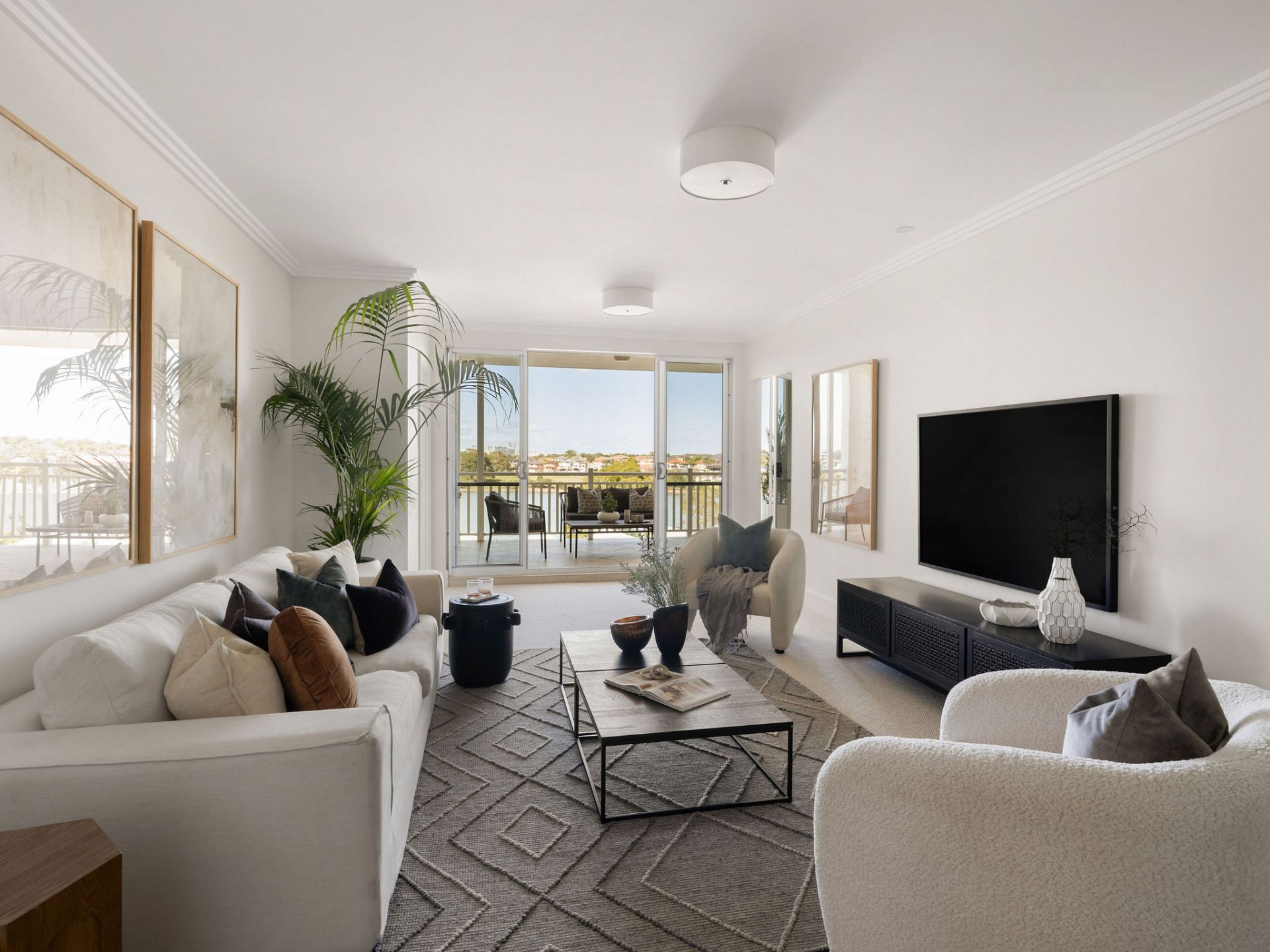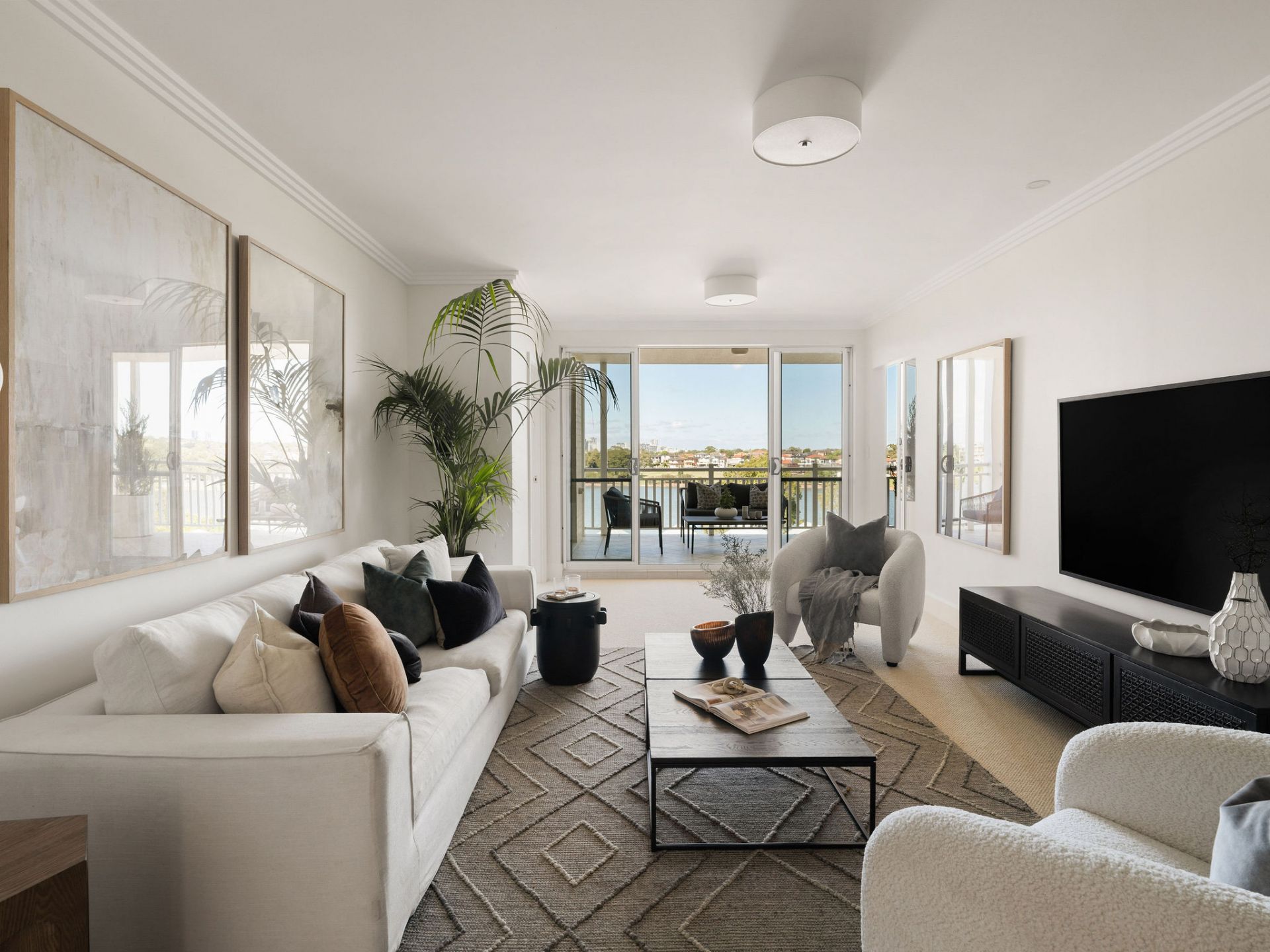 Vast living and dining zones embraced by stunning water views