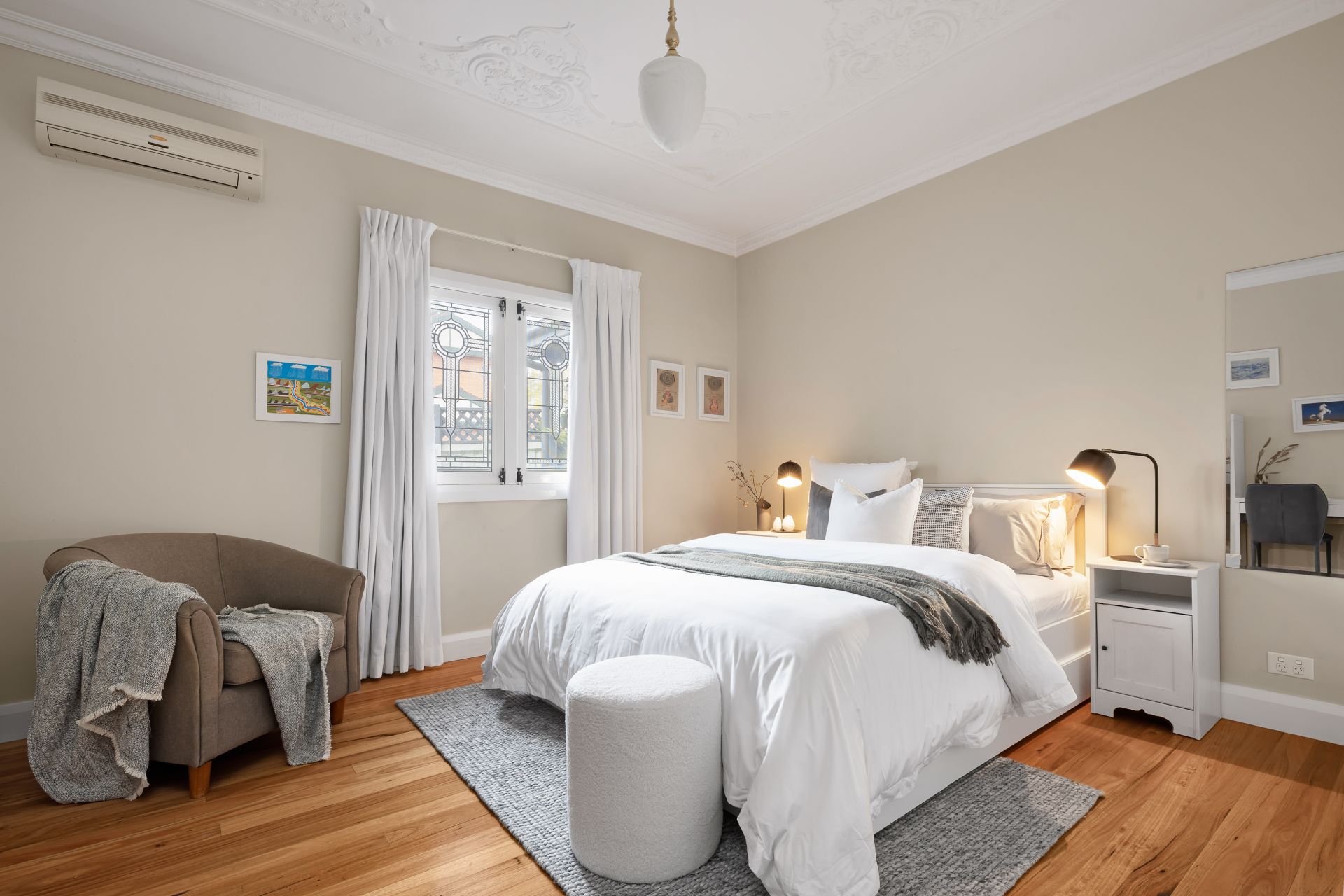Large bedrooms w` high ornate ceilings & leadlights