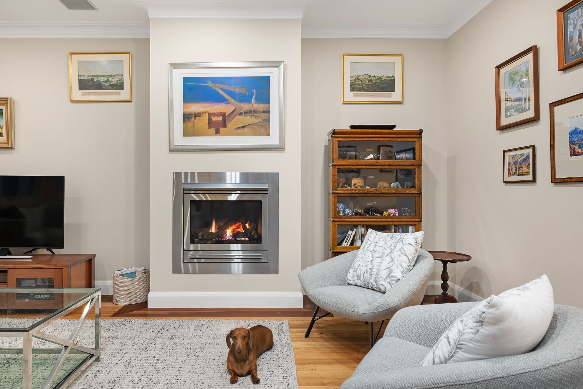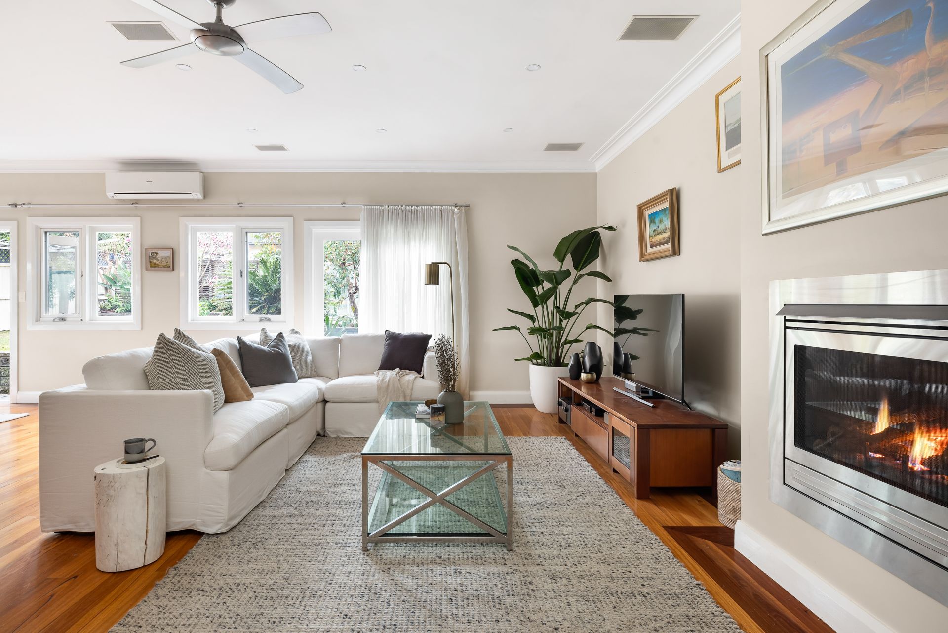 Air conditioning throughout and a cozy gas fireplace