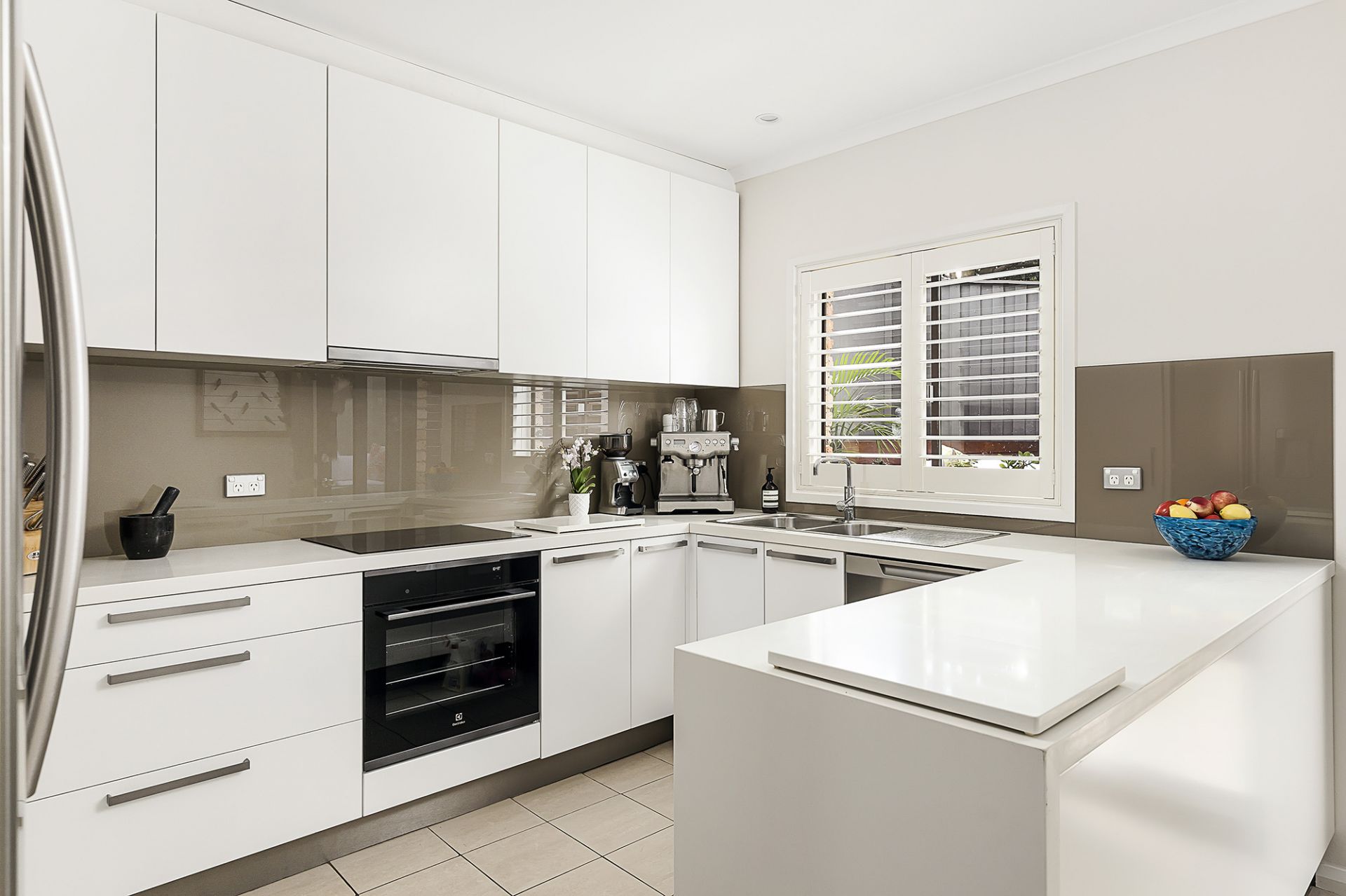 - Modern kitchen with stone benches, huge pantry and stainless-steel appliances