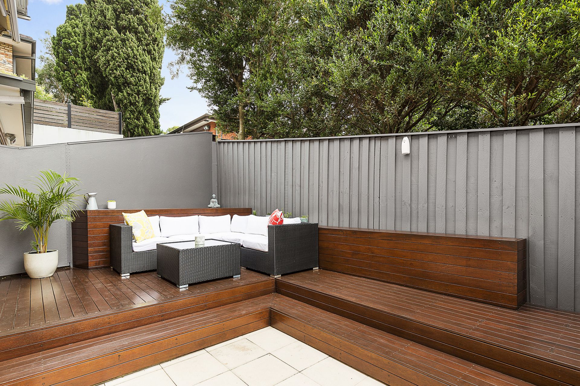 - Large entertainers' courtyard with staged timber decking perfect for kids & pets