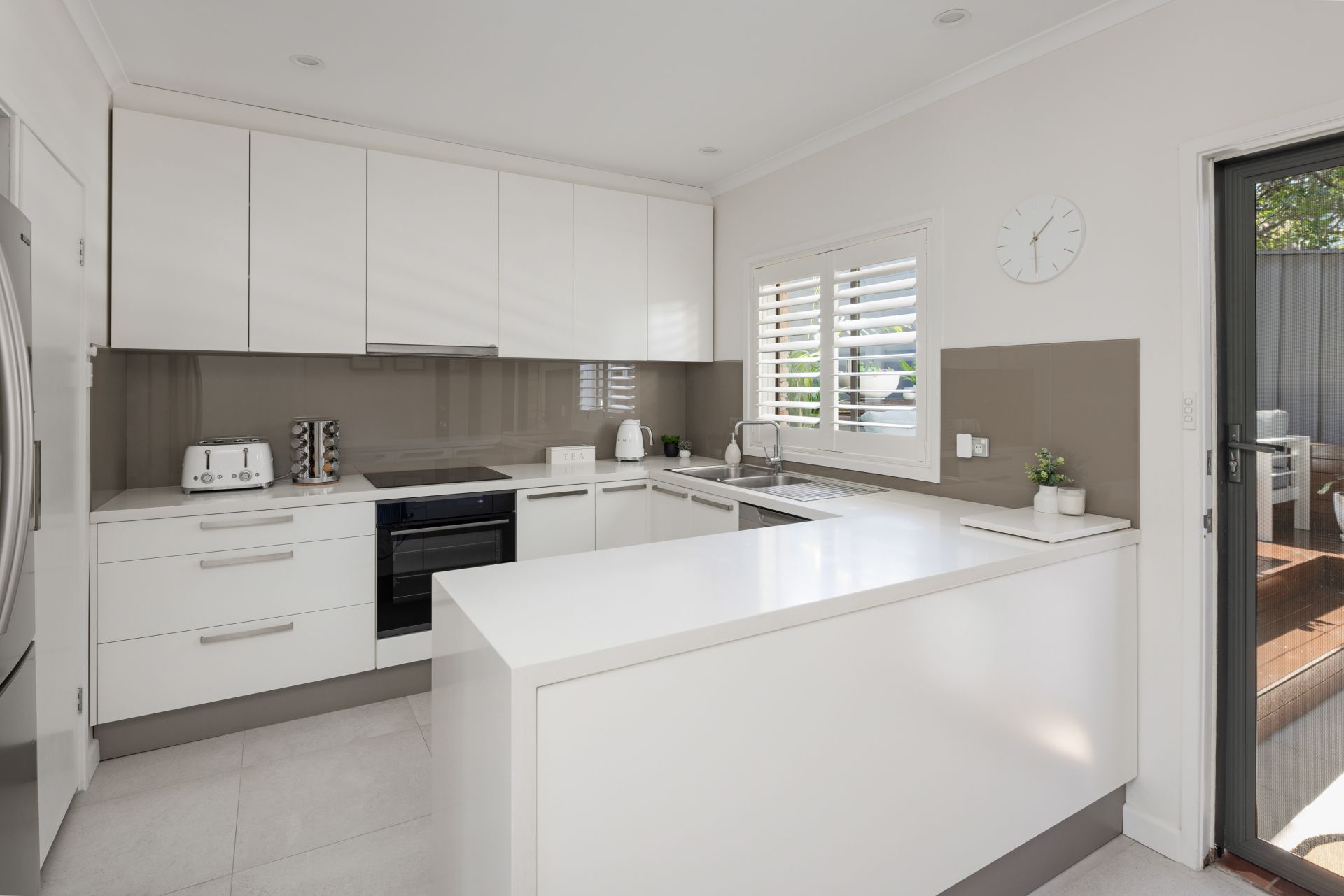 Modern kitchen w` stone bench, huge pantry