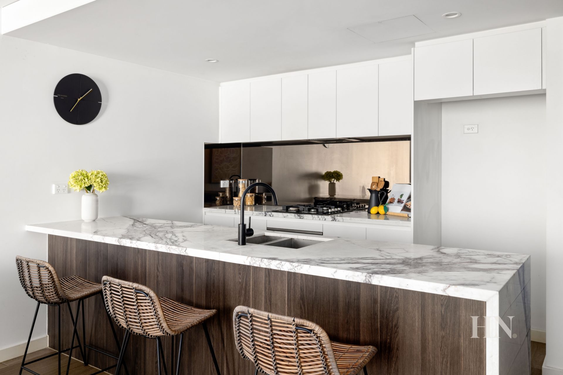 Modern gas & stone kitchen, island bench
