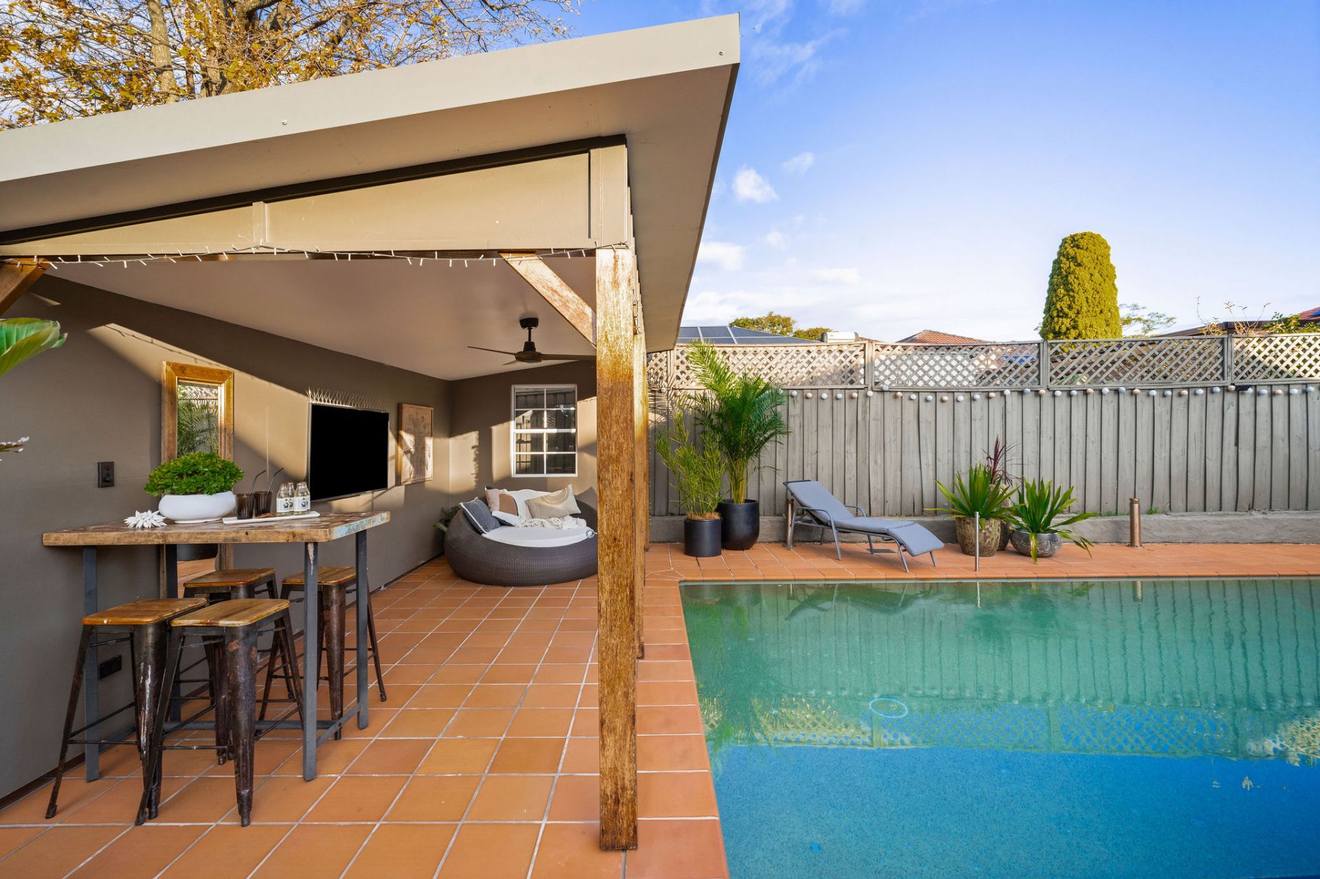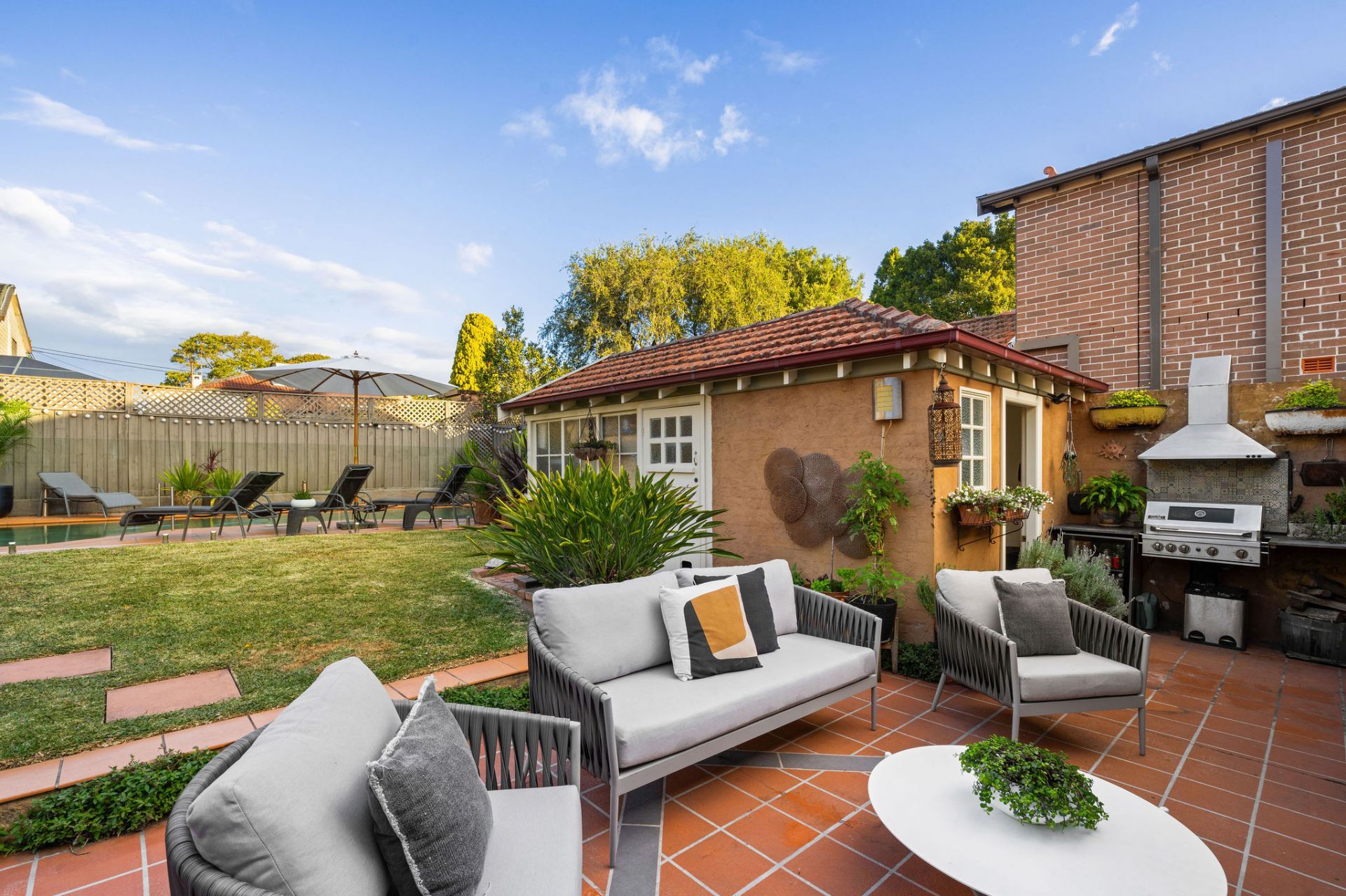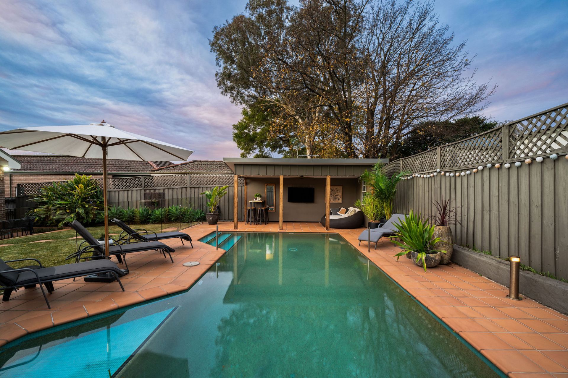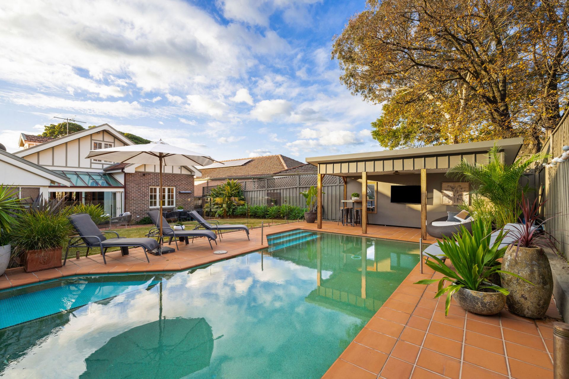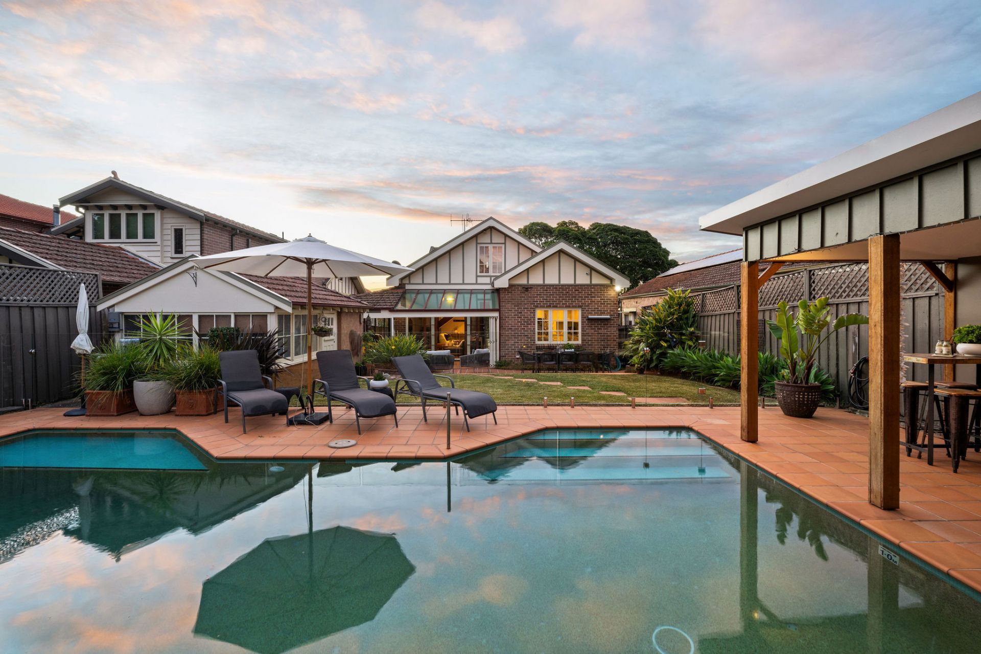 Wraparound outdoor entertaining overlooking resort-style pool & cabana