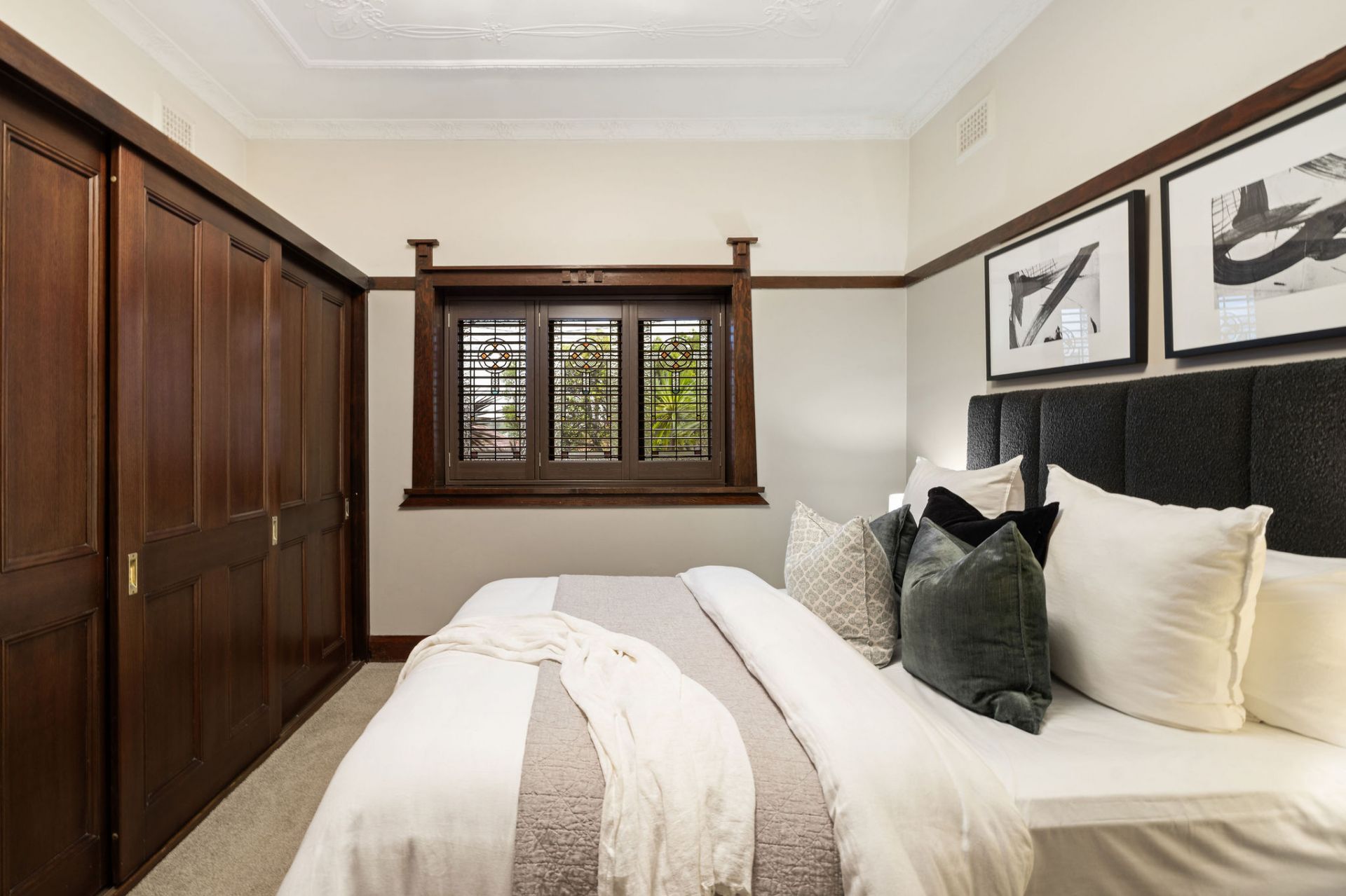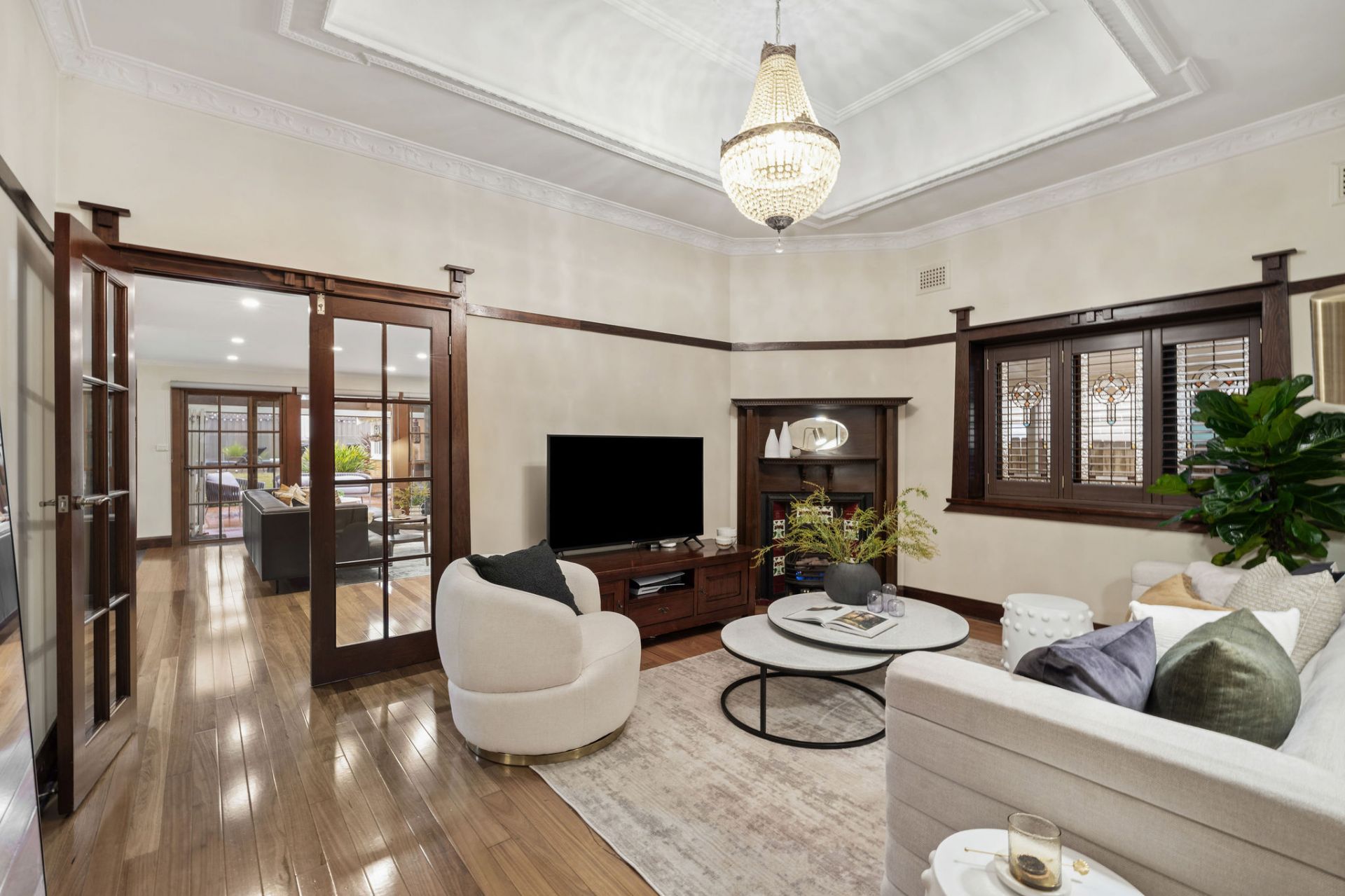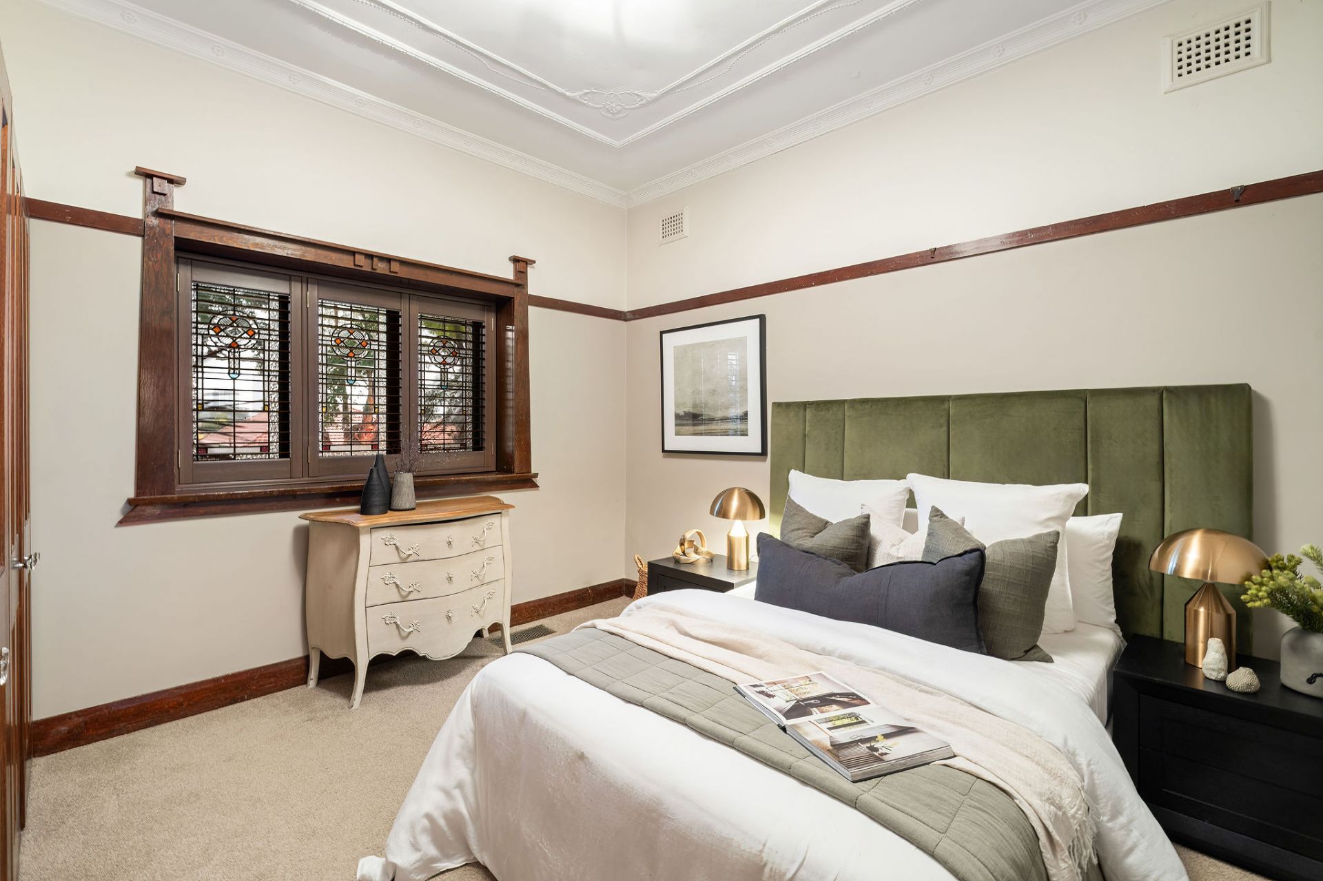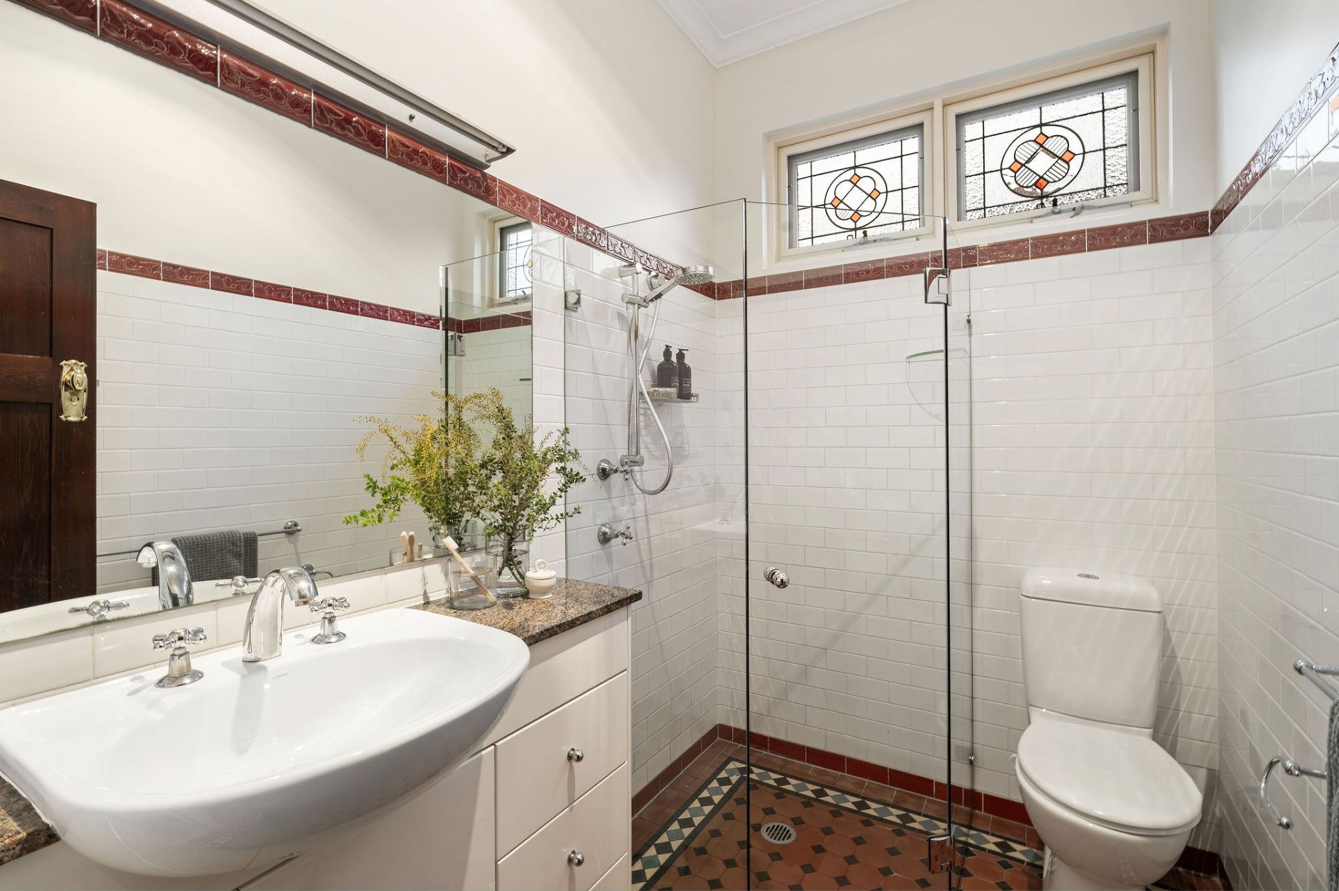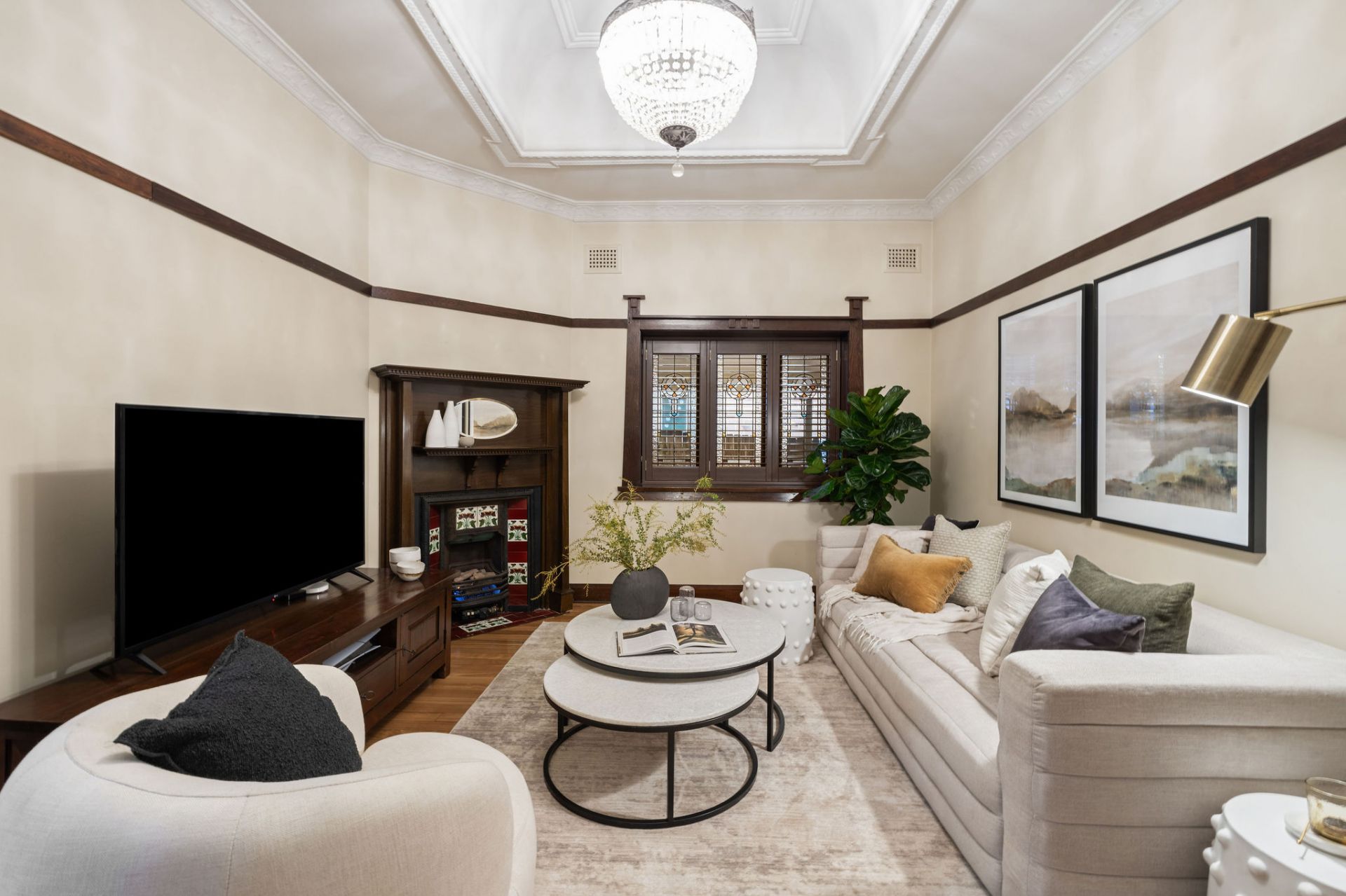 Stunning leadlight windows and a period style gas fireplace