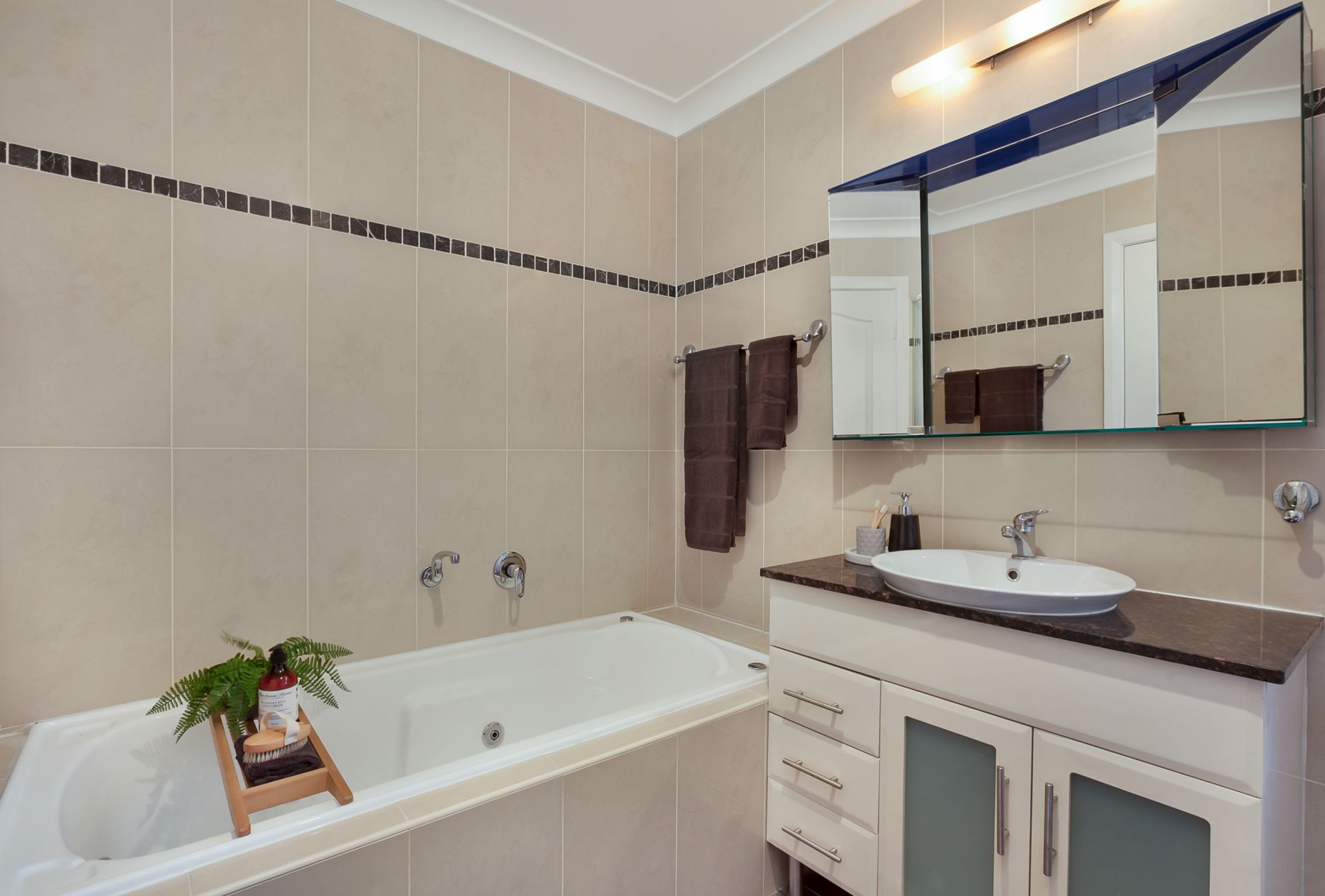 - Impeccably kept modern bathroom showcases quality fittings