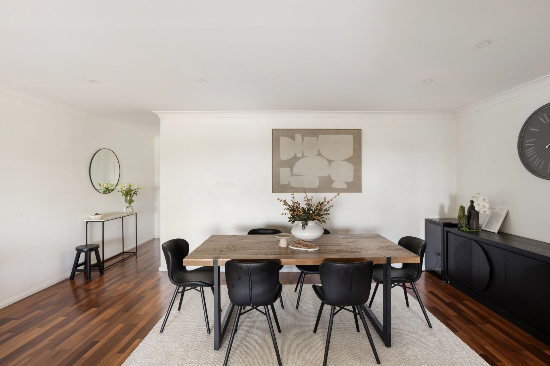 The expansive open-plan living and dining area easily accommodates an eight-seater table and full lounge suite, flowing seamlessly to an oversized all-weather terrace. Elevated and private, with leafy outlooks and water glimpses across the bay, it functions as a genuine outdoor living room - protected, usable and ideal for entertaining year-round.