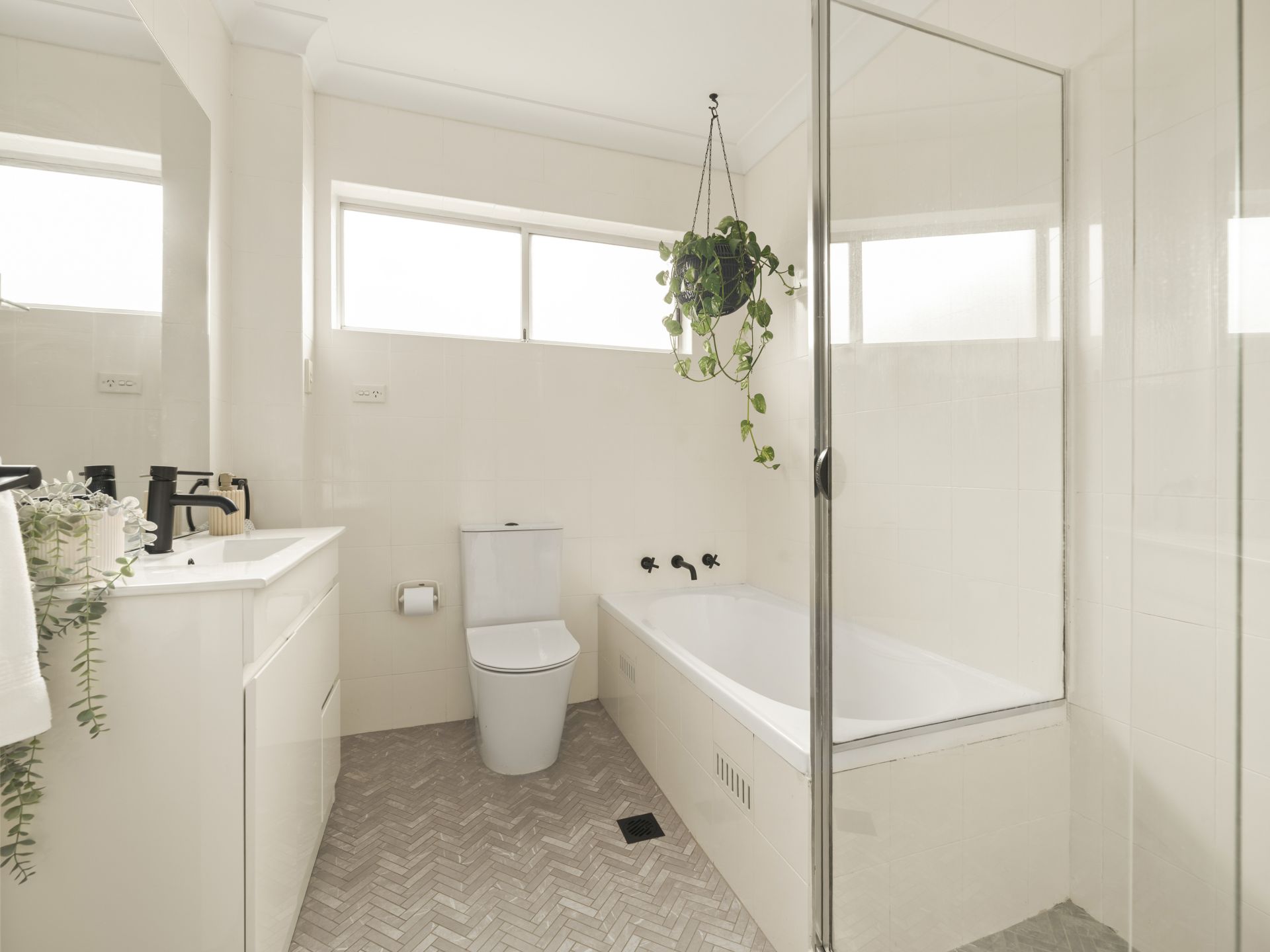 The stone bench kitchen includes quality and recently updated appliances. The bathroom and laundry have been stylishly renovated with custom cabinetry and herringbone tiling. A practical 1.5-bathroom layout (two toilets) adds everyday flexibility.