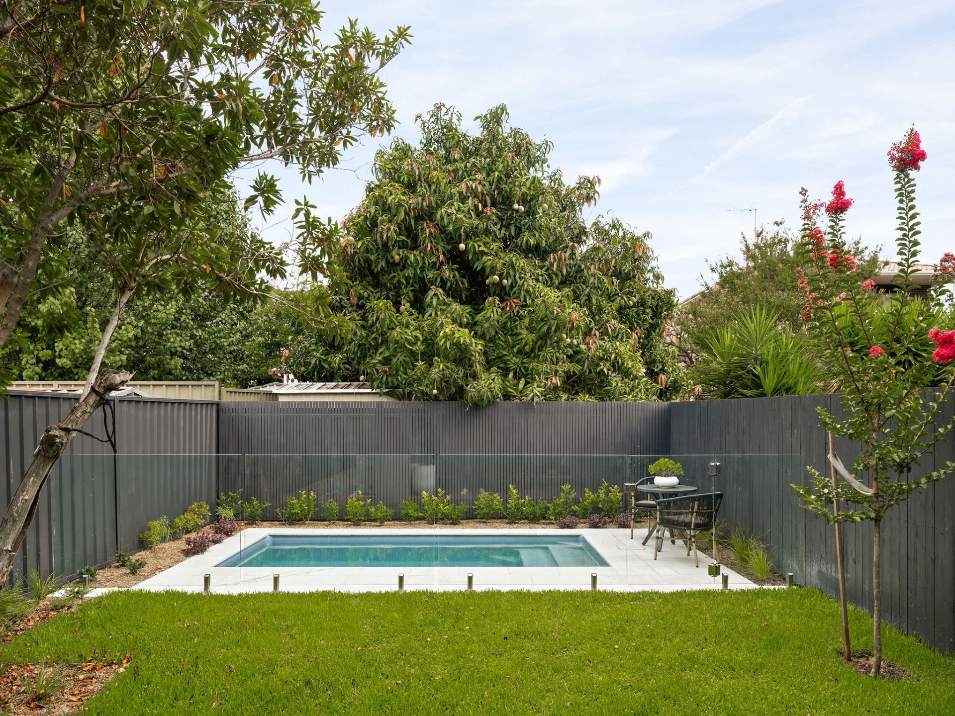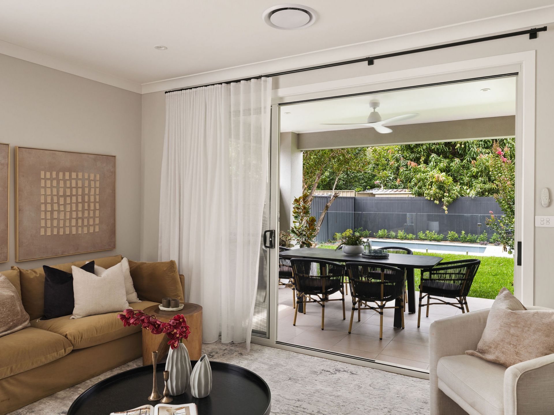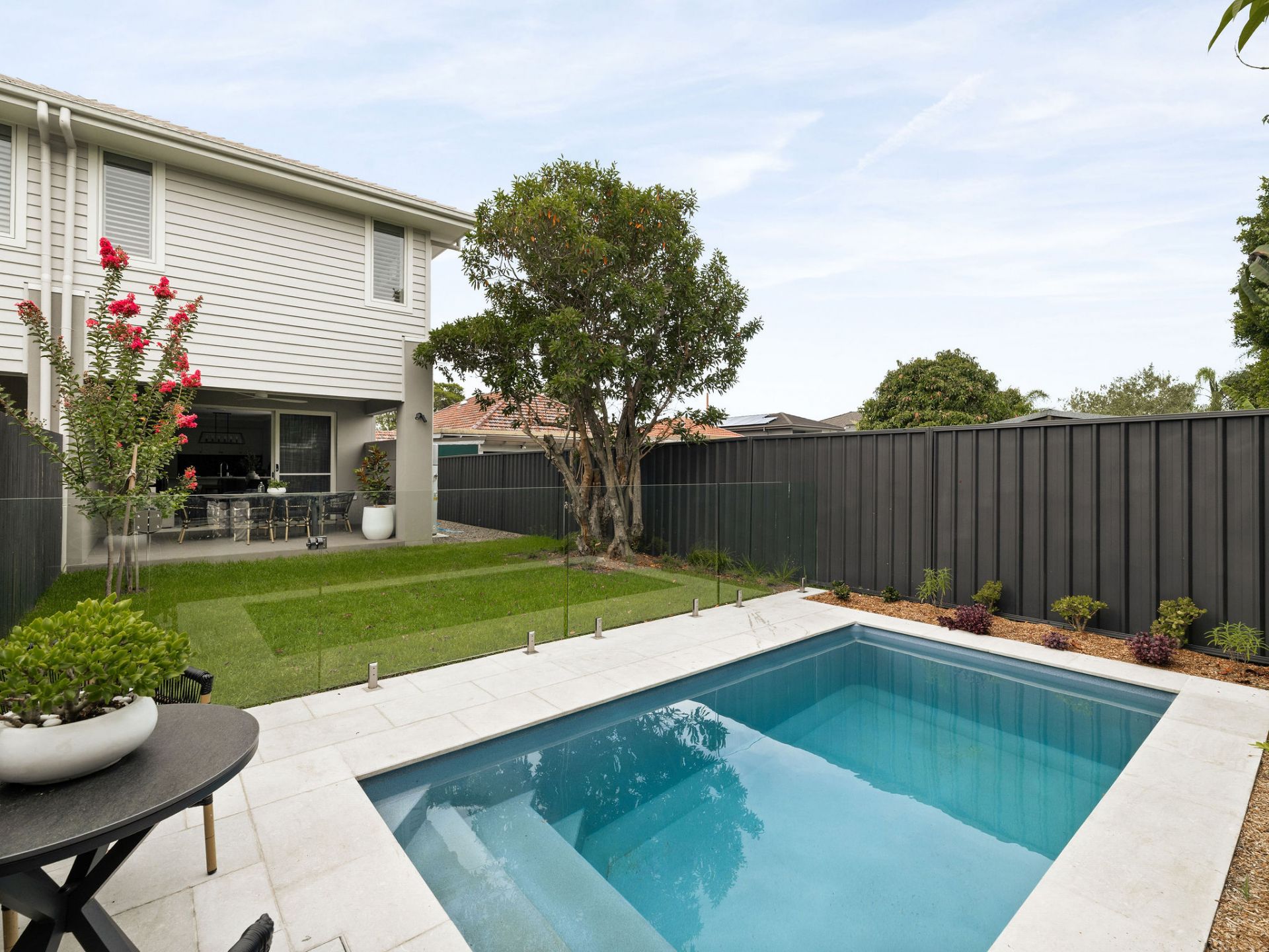 The interiors are generous and welcoming, with high ceilings and oversized living zones flowing naturally to covered alfresco entertaining. Large openings connect the home to lush, landscaped gardens and a concrete in-ground swimming pool, surrounded by borrowed landscaping that creates a strong sense of privacy and a seamless indoor–outdoor flow ideal for year-round family living and entertaining.