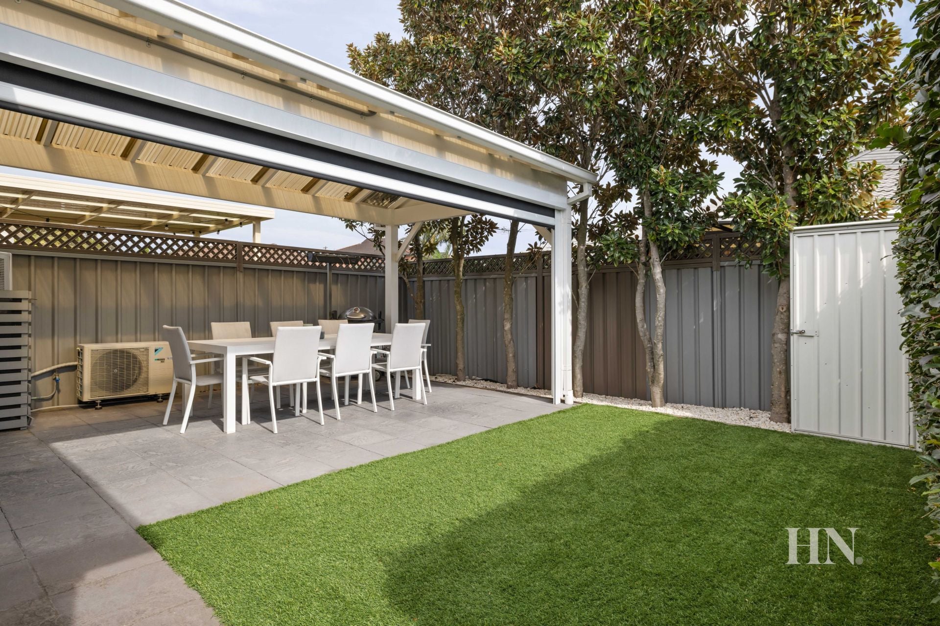 Newly landscaped garden area with a pergola