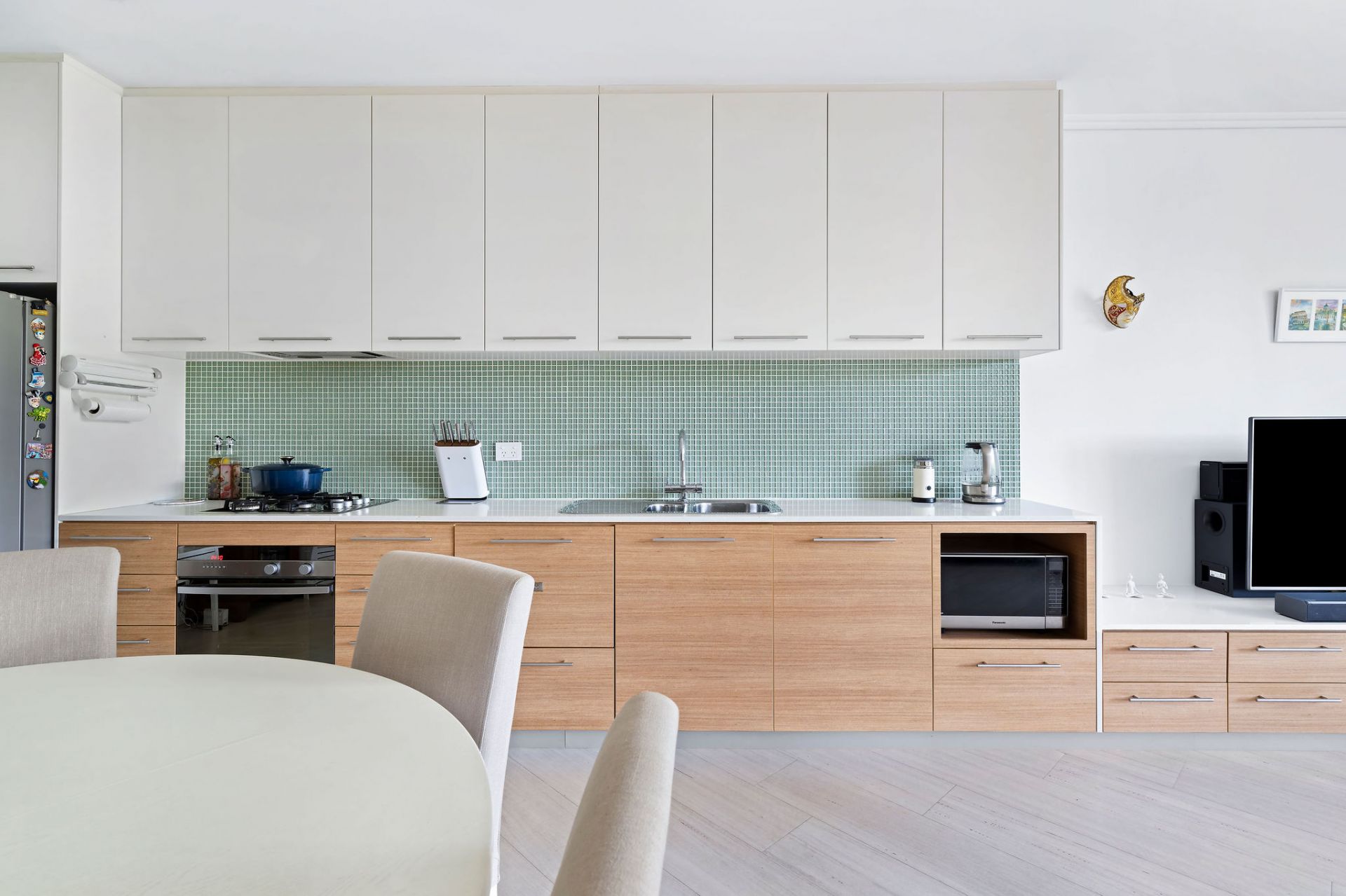 Sleek stone-topped gas kitchen with ample storage