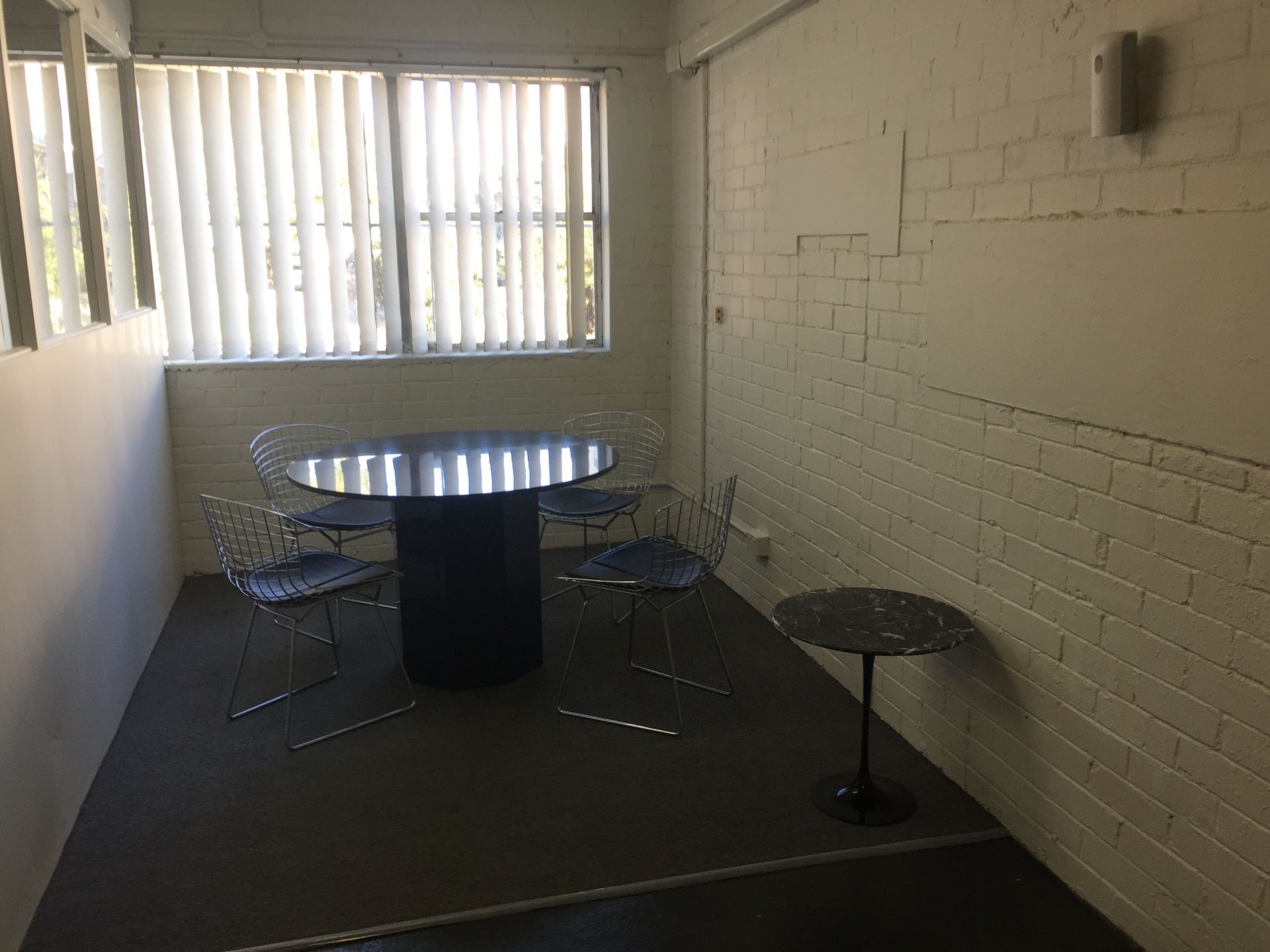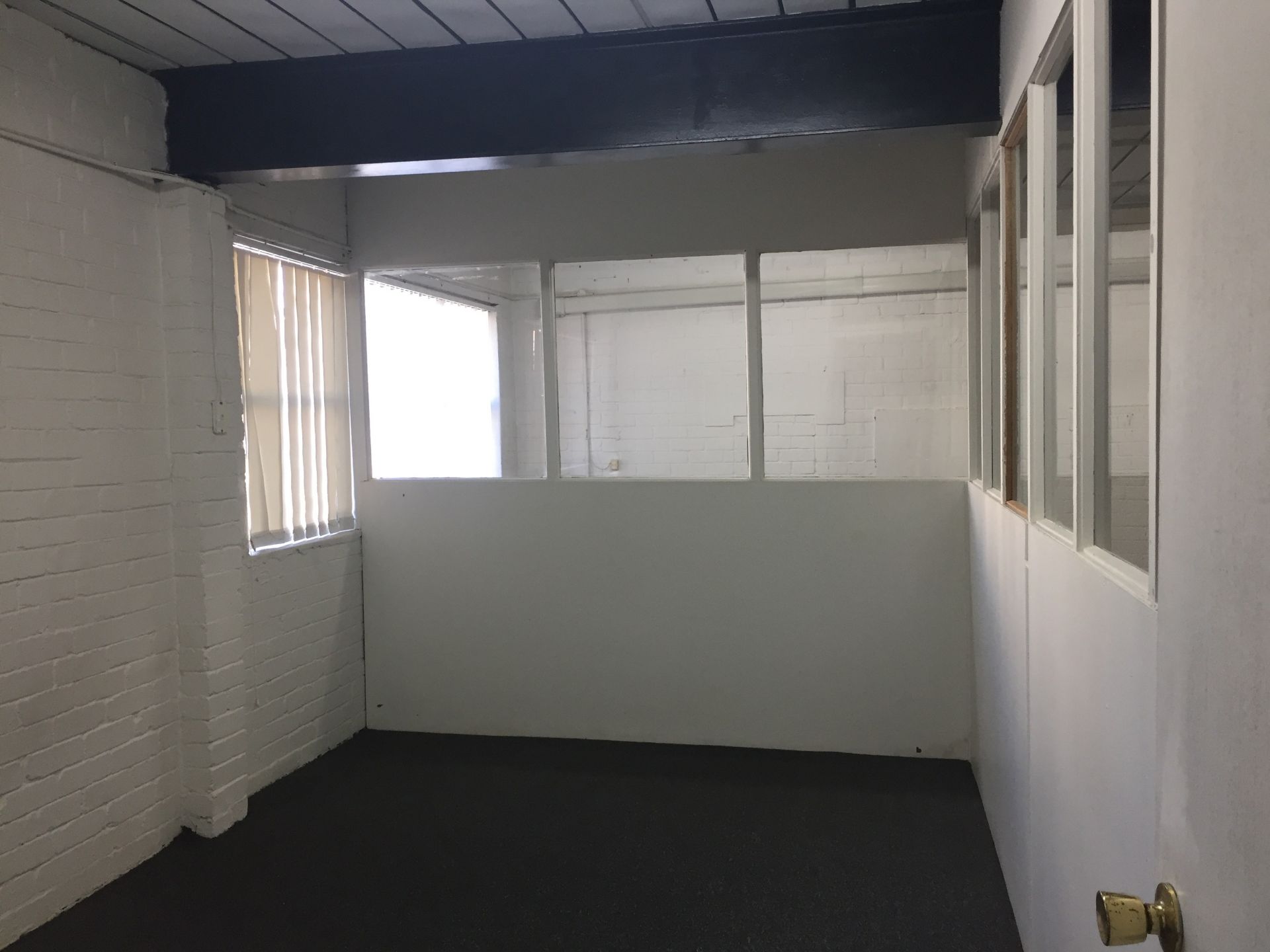 Mostly open plan, ground floor security space of 100sqm (approx 11mx10m) with partitioned office, plus conference area (partly furnished).